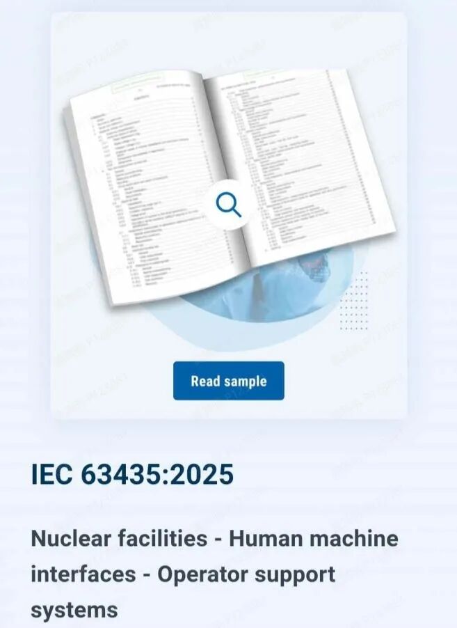 中廣核工程主導編制的首個IEC國際標準正式發... 近日,由中廣核工程有限公司設計院主導編制的國際電工委員會(簡稱“IEC”)標準IEC 63435《Nuclear facilities -Human machine ...
